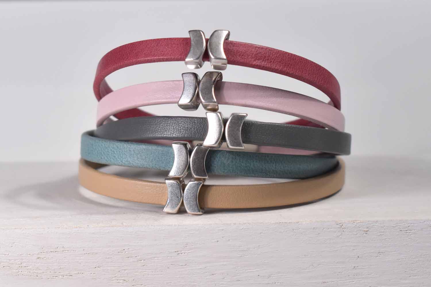 This classic bracelet is a wardrobe staple and the leather is just gorgeous! It comes in five wonderful colors that are great for layering with other pieces.