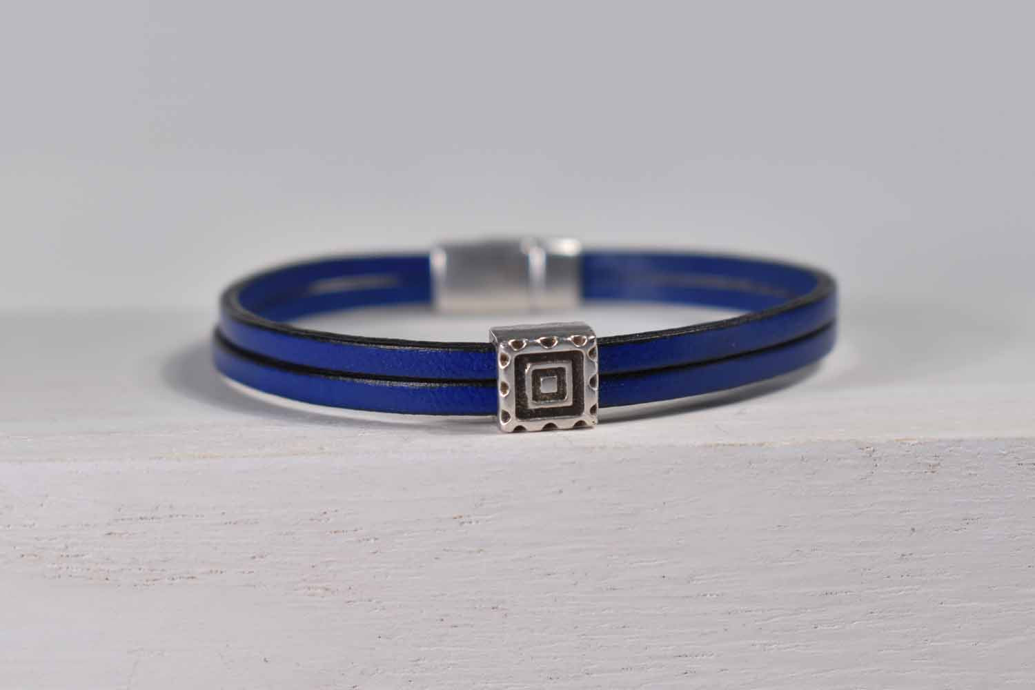 This electric blue leather is a great punch of color. The bracelet come with a cute square bead. It comes with our signature magnetic sterling over pewter clasp.