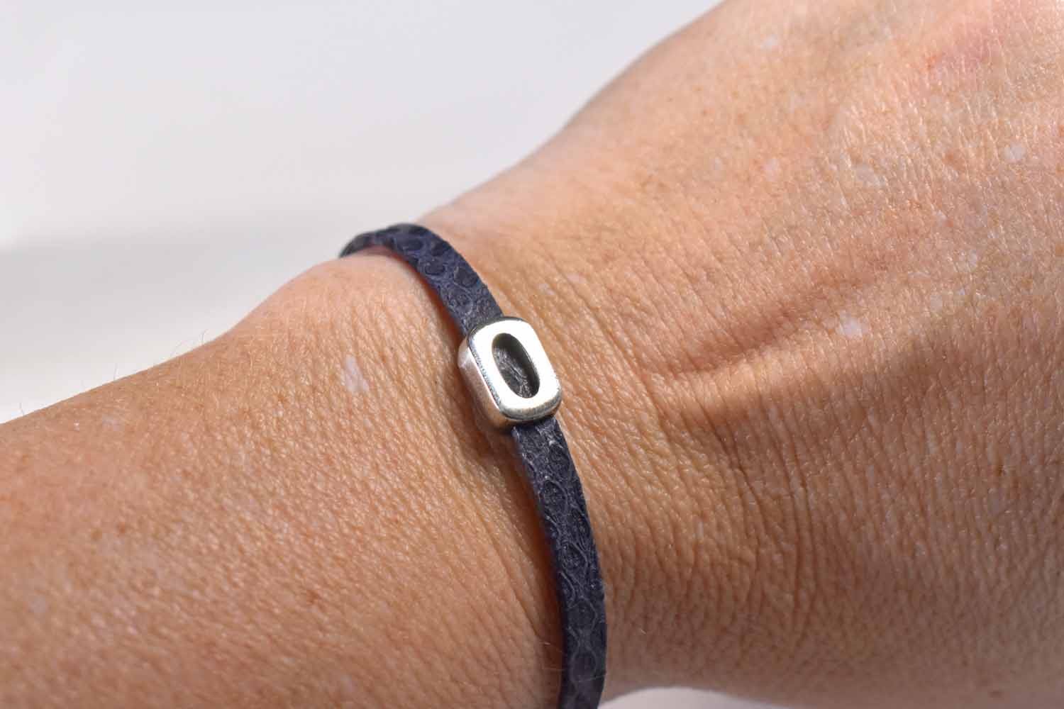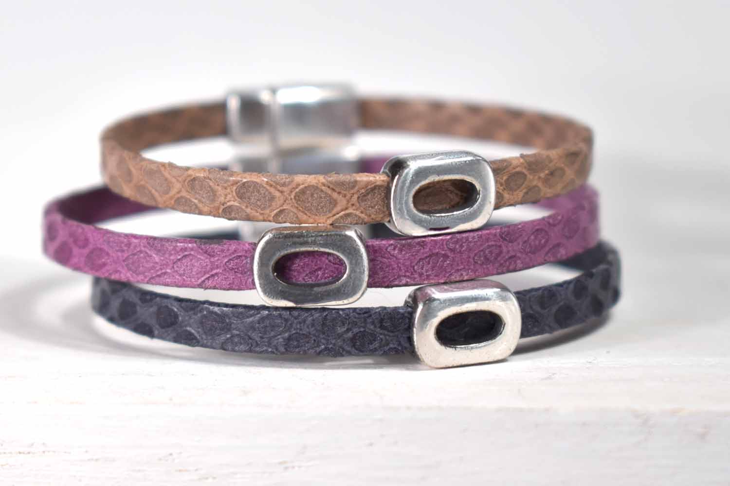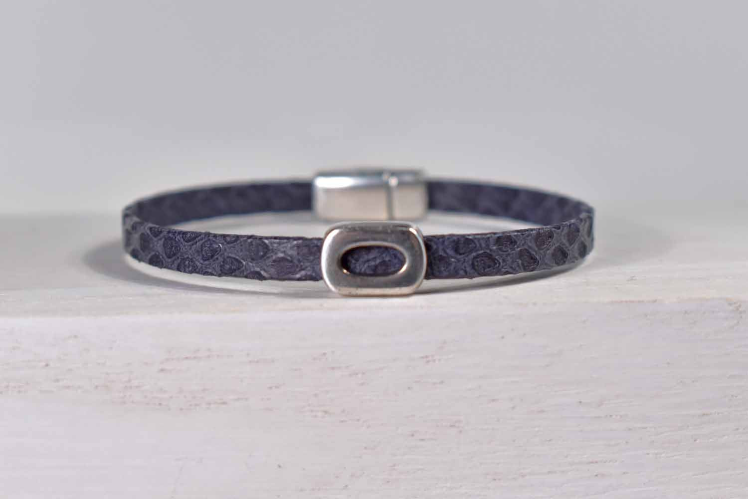 The Orly imprinted leather bracelet is a great piece to add to your growing stack! We offer this classic design in three color choices: navy, magenta, and coffee. They come with our signature magnetic clasp.