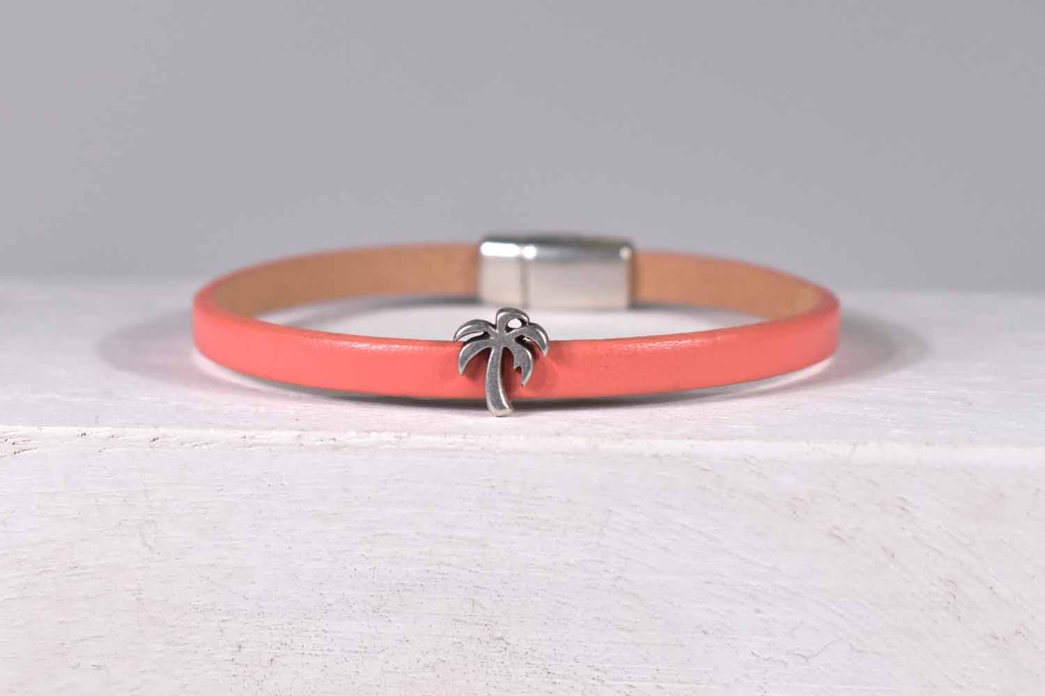 This adorable coral bracelet features a palm tree, making it the perfect beach piece! The magnetic clasp and centerpiece our made of our classic sterling over pewter.