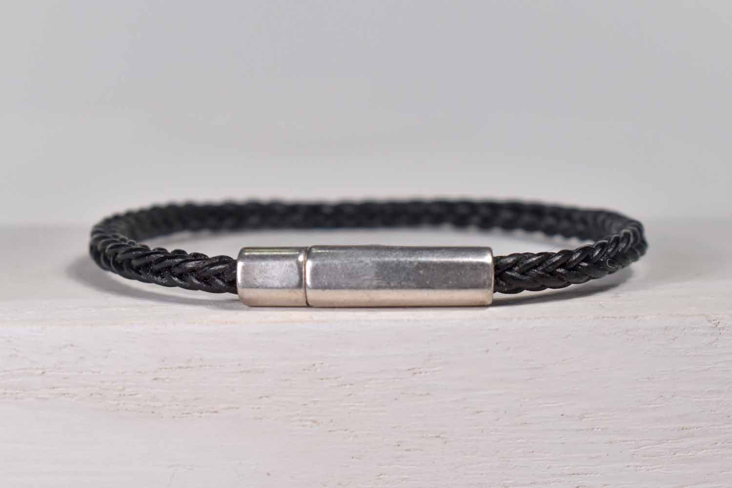 This braided leather is square! The leather is 4mm in diameter and the clasp is our signature sterling over pewter.